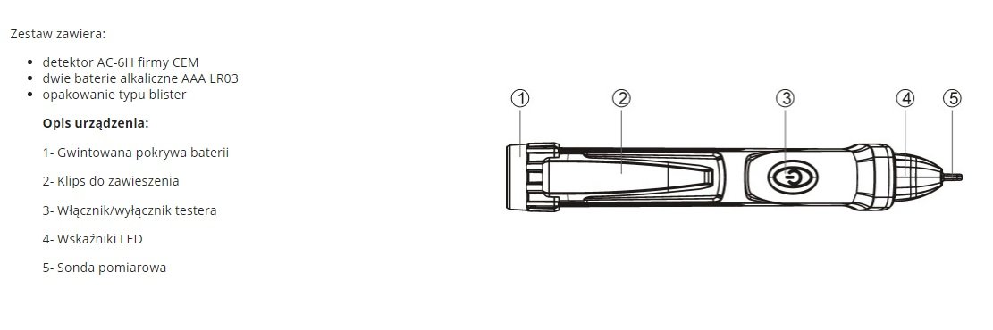 wykrywanie przewodów pod napięciem detekcja fazy "L" wykrywanie napięcia w zakresie 50-1000V sygnalizator dźwiękowy i optyczny