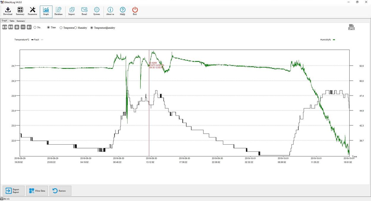 • możliwość pomiaru i rejestracji z 1 czujnika - temperatura + wilgotność