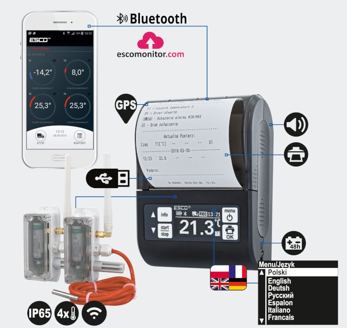 Wszystkie dane zapisywane są w trwałej pamięci rejestratora. Częstotliwość ich zapisu można ustawić w przedziale od 1 minuty do 24 godzin.