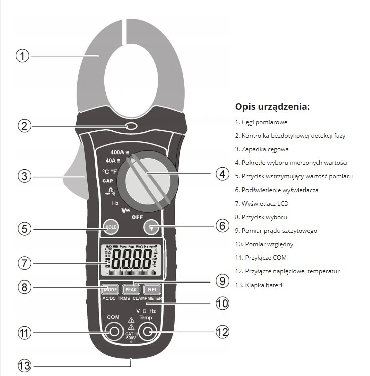 pomiar napięcia AC/DC: 600V