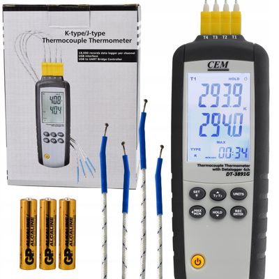 Profesjonalny poczwórny rejestrator temperatury do współpracy z termoparami typu K oraz J, NO: DT-3891G