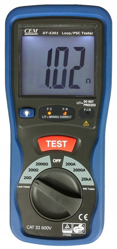 pomiaru impedancji pętli zwarcia w zakresie 20/200/2000Ω (±2%)