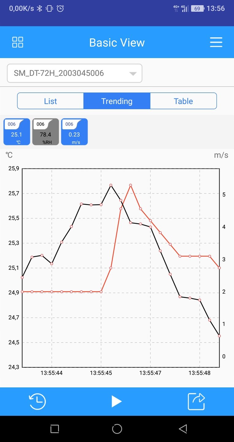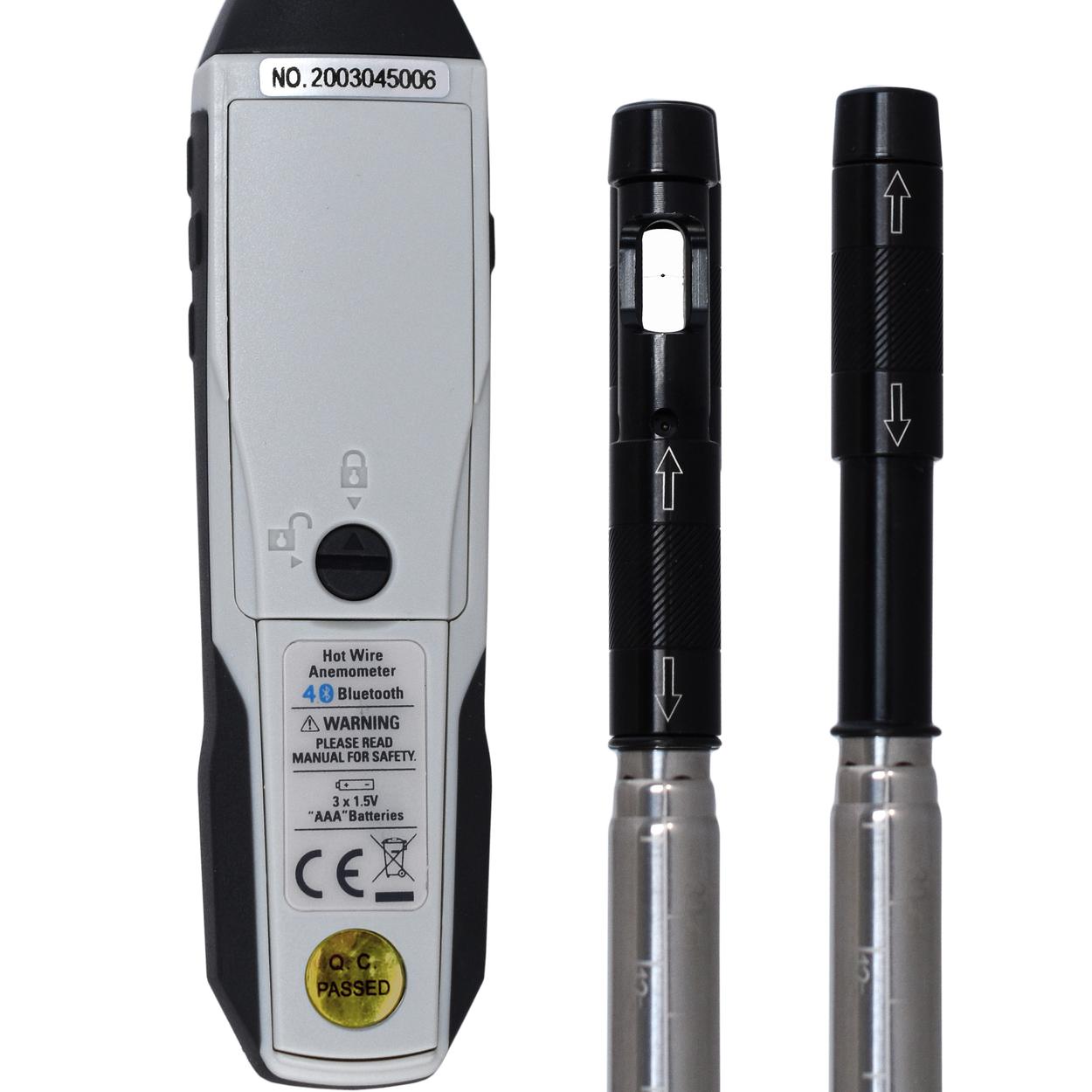 Miernik-rejestrator prędkości powietrza z sonda ciepno-oporową.