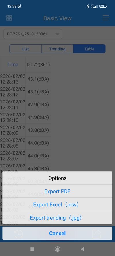 Profesjonalny sonometr DT-72S+ z wysoką dokładnością i korekcją A/C. Komunikacja Bluetooth ze smartfonem umożliwia rejestrację, analizę i eksport danych (PDF/XLS). Niezawodne urządzenie.