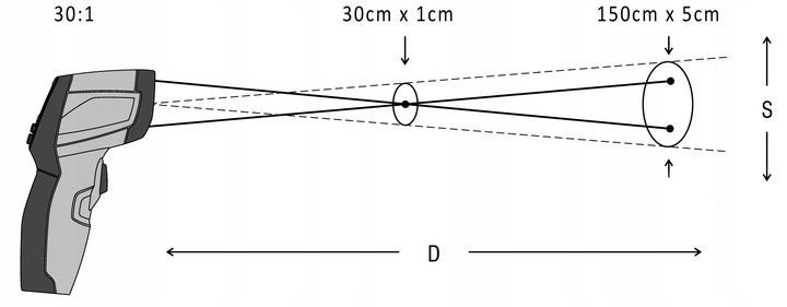 Do wykonania prawidłowego pomiaru konieczne jest, aby pole pomiarowe pirometru nie wychodziło poza przedmiot, którego temperaturę mierzymy.