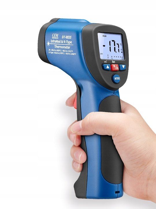 Mierzy temperaturę materiałów i powierzchni takich jak: