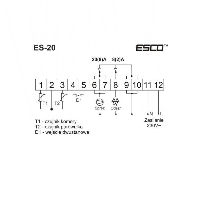 wyjścia: sprężarka, odszranianie