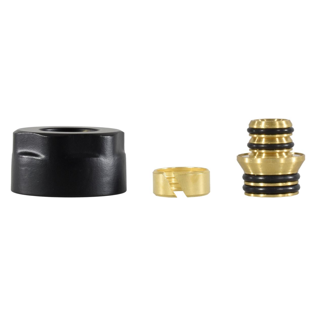 Solidna złączka zaciskowa Hanz do rur ALU-PEX 16mm. Idealna do podłączenia do zaworów grzejnikowych dzięki gwintowi GW3/4. Elegancki czarny mat zapewnia estetyczne wykończenie instalacji. Wysoka jakość i łatwość montażu.