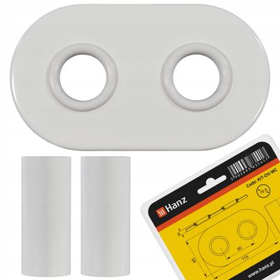 Stylowa, biała rozeta maskująca HANZ z tulejami. Idealna do estetycznego zakrycia połączeń grzejnikowych osiowych lub dekoracyjnych.