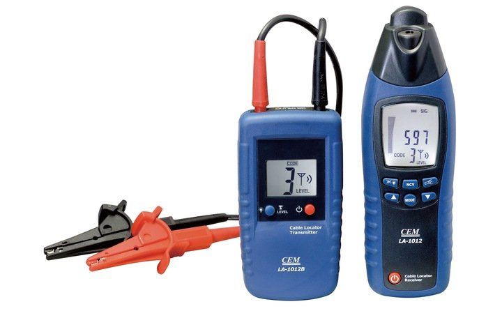 Lokalizator LA-1012 służy do wykrywania przewodów i metalowych rur. Wykrywa przewody elektryczne w ścianach, zwarcia oraz przerwy w instalacji. Przyrząd umożliwia śledzenie instalacji elektrycznej podtynkowej jak również jej trasy w ziemi niezależnie od tego czy obwód znajduje się pod napięciem czy tez nie. Umożliwia wykrycie przerw i zwarć w elektrycznych obwodach ogrzewania podłogowego oraz poszukiwanie metalowych rur instalacji CO i wodociągowych.  Zestaw lokalizujący składa się z dwóch przyrządów: nadajnika i lokalizatora. Nadajnik wytwarza sygnał 125kHz doprowadzany do poszukiwanego kabla/rury, dookoła śledzonego kabla powstaje pole magnetyczne, które po dotarciu do odbiornika jest przetwarzane na wynik  wyświetlany w postaci cyfrowej i baragrafu na wyświetlaczu LCD. Gdy lokalizuje się przerwę w linii używając do tego celu jednego nadajnika dołączonego do jednego końca tej linii, to w pewnych warunkach miejsce przerwania może być trudne do dokładnego zlokalizowania, ze względu na zakłócenia pola. Można tego uniknąć używając dwóch nadajników dołączonych po obu końcach testowanej linii. W takim przypadku każdy z nadajników ma ustawioną wartość kodu (np. 1 i 2). Warunek: testowana linia nie może być pod napięciem.<br/>Użycie drugiego nadajnika jest wymagane przy wykrywaniu błędów w podpodłogowych instalacjach centralnego ogrzewania (metoda jednobiegunowa), głębokość śledzenia do 2 m. Komplet składa się z nadajnika LA-1012B, odbiornika LA-1012, 2 przewodów pomiarowych (czarny i czerwony) zakończonych wtykami banankowymi bezpiecznymi, 2 chwytaki krokodylowe bezpieczne (czarny i czerwony), 2 sondy igłowe bezpieczne (czarno-szara i czerwono-szara), 2 baterie (zainstalowane), neseser sztywny mieszczący przyrządy i akcesoria, instrukcja obsługi. Dodatkowy nadajnik jest dostępny jako opcja.