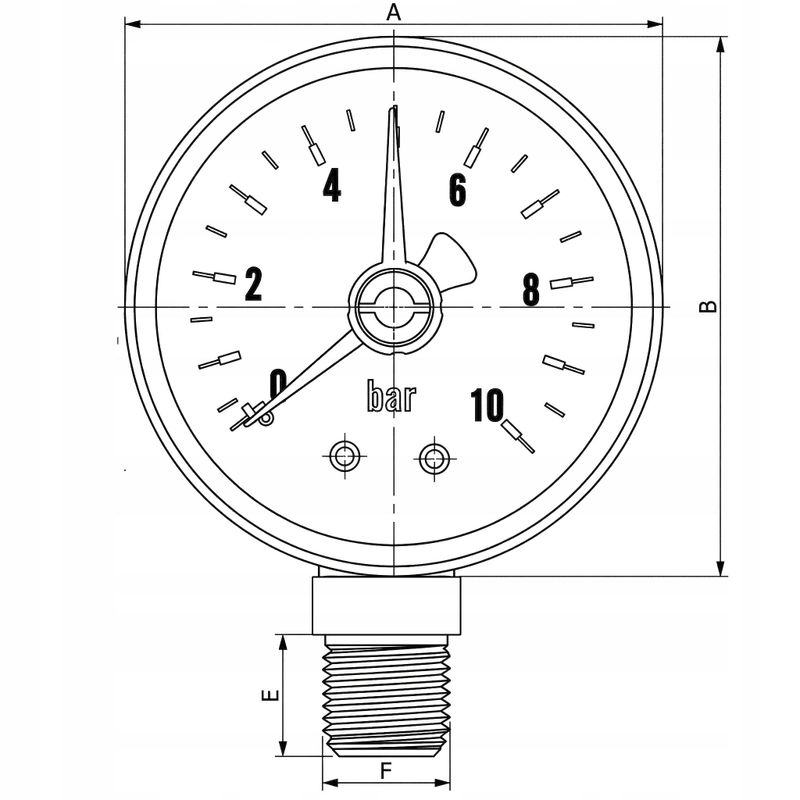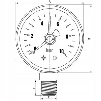 MANOMETR RADIALNY DOLNY 1/4" 50mm 0-10 bar PIONOWY TARCZOWY CIŚNIENIOMIERZ