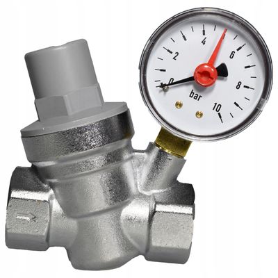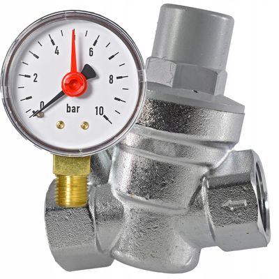Reduktor cisnienia z manometrem 1/2 DN15, 1-6 bar z filtr stal nierdzewna