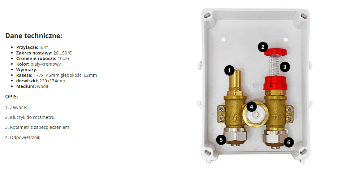 Zestaw podtynkowy zawór RTL z rotametrem