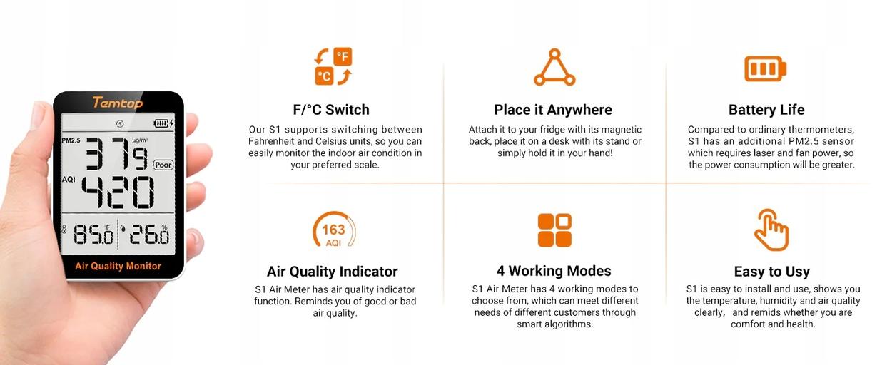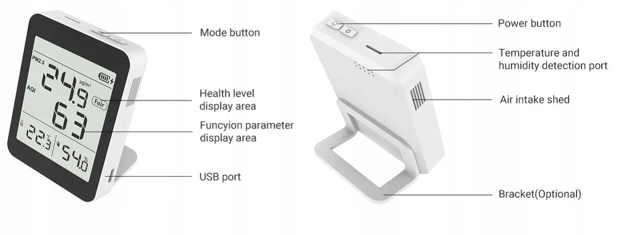 - zakres pomiarowy: PM2,5 0-999µg/m³