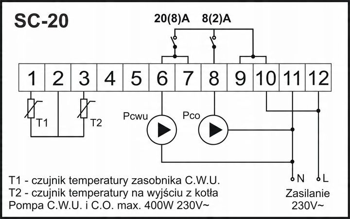 SC-20 przeznaczony jest do sterowania układem grzewczym lub chłodniczym. W zależności od konfiguracji regulator może sterować prostymi układami jak bojler czy pompa obiegowa, jak i rozbudowanymi np. kolektorem słonecznym lub kominkiem z płaszczem wodnym.
