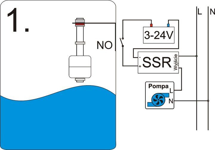 1. Pływak pracujący w trybie normalnie otwarty.
