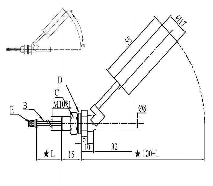 Czujnik pływakowy kątowy