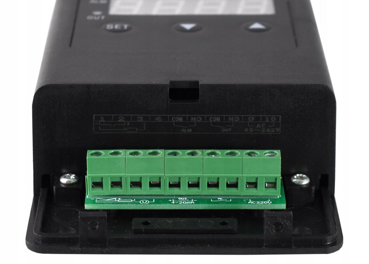 Regulator wyposażony jest w wyjście regulacyjne przekaźnikowe lub napięciowe dla przekaźnika SSR (domyślnie przekaźnikowe, SSR po uzgodnieniu dopłata za tą opcje 15 zł) oraz wyjście alarmowe przekaźnikowe