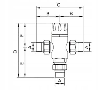 Zawór mieszający termostatyczny 1” z półśrubunkami 1” 25-50°C