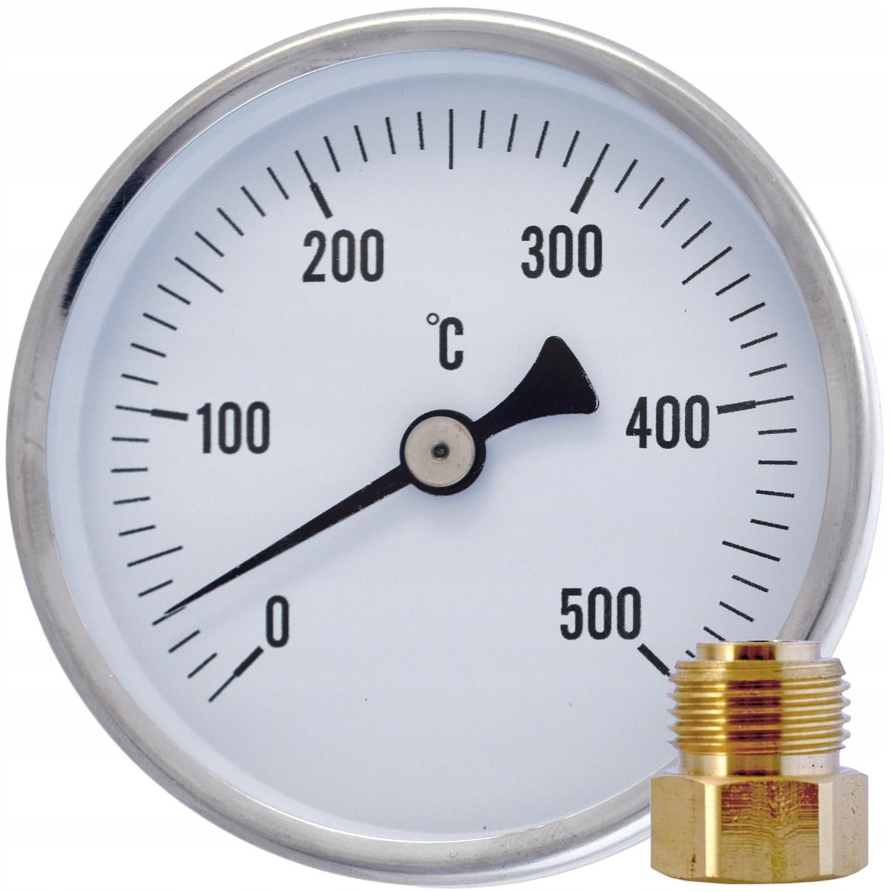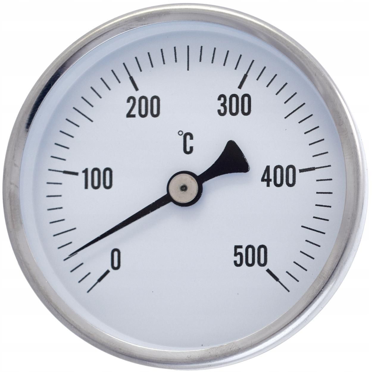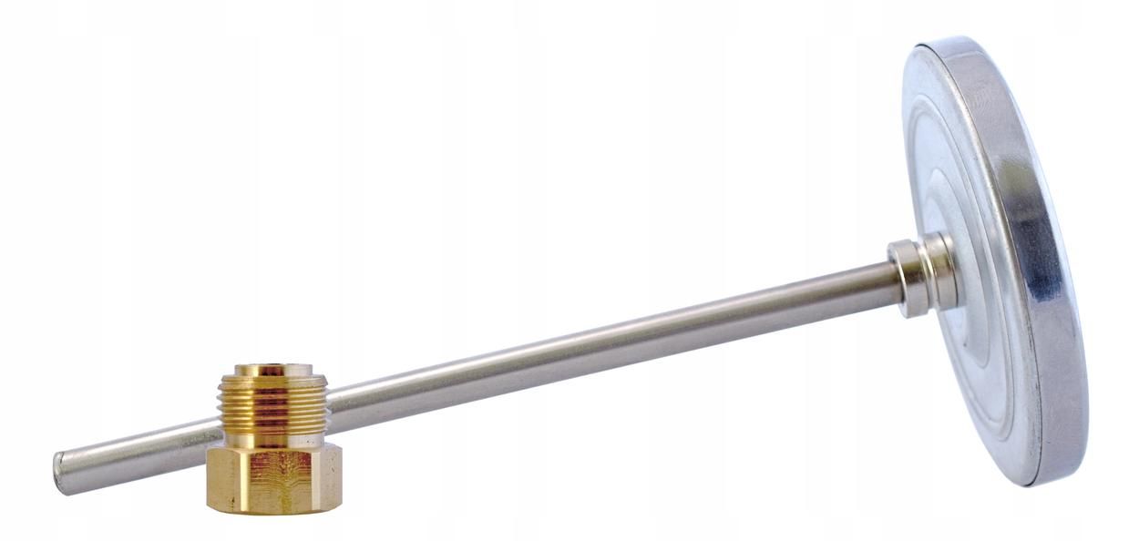 Klasyczny termometr tarczowy z sondą do pomiaru temperatury spalin o zakresie 0...500°C. Wyposażony w czujnik wykonany ze stali nierdzewnej oraz przesuwny króciec mocujący, który pozwala zamocować termometr na dowolną głębokość.