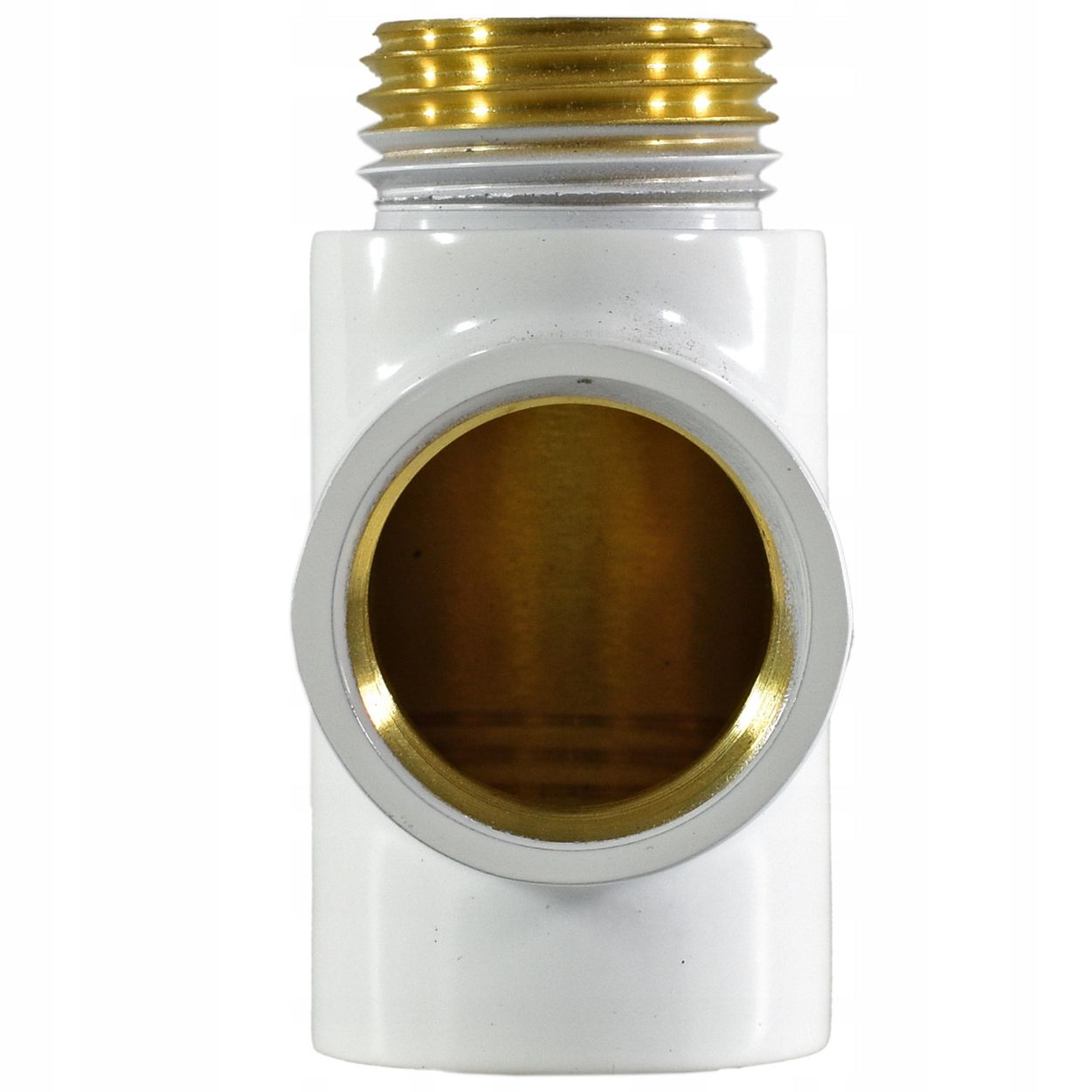 Biały mosiężny trójnik 1/2" do grzałki grzejnika. Łączy grzałkę i C.O. w jednym otworze. Pasuje do grzejników stalowych i aluminiowych. Solidny, trwały i niezawodny.