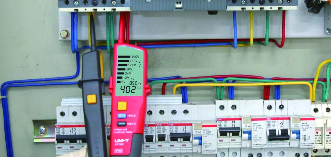 Automatyczny miernik z dużym wyświetlaczem LCD umożliwiający pomiar napięcia przemiennego AC, stałego DC do 690V (w tym trójfazowy prąd zmienny). Miernik posiada także buzzer oraz latarkę do oświetlenia miejsca pomiaru.