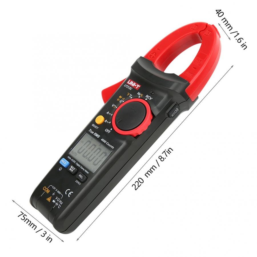 Napięcie AC/DC do 600V Rezystancja do 40MΩ Prąd AC do 400A Temperatura Sprawdzanie ciągłości obwodu - brzęczyk Pojemność kondensatorów do 40mF