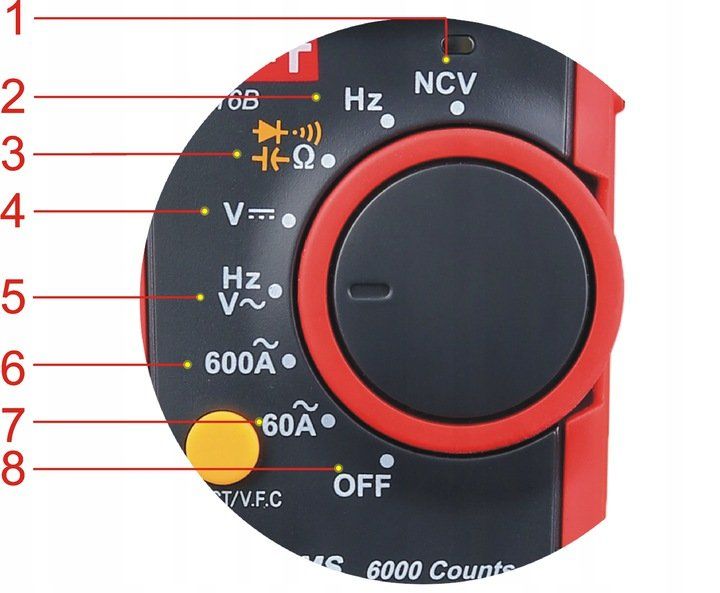 pomiar napięcia DC: 600mV~6V~1000V pomiar napięcia AC: 6V~750V pomiar natężenia prądu AC: 60A~600A pomiar rezystancji w zakresie: 600Ω~60MΩ pomiar pojemności kondensatorów: 99nF~60mF