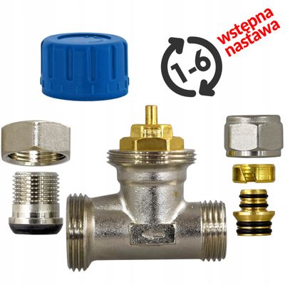 Zawór termostatyczny prosty 1/2" PEX 16. Łatwy montaż, 6-stopniowa regulacja przepływu i płynna kontrola temperatury. Kompatybilny z głowicami M30x1.5. Idealny do grzejników, podłogówki i rozdzielaczy.