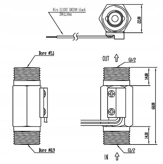 Czujnik przepływu cieczy- wody - sygnalizator 1/2"