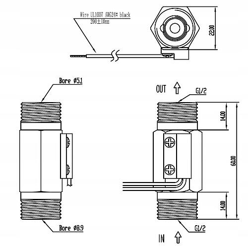 Czujnik przepływu cieczy- wody - sygnalizator 1/2"