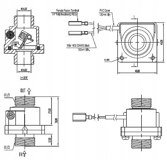 Czujnik przepływu cieczy 1/2, NO: FSW-4050-G1/2"_SUS