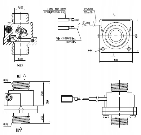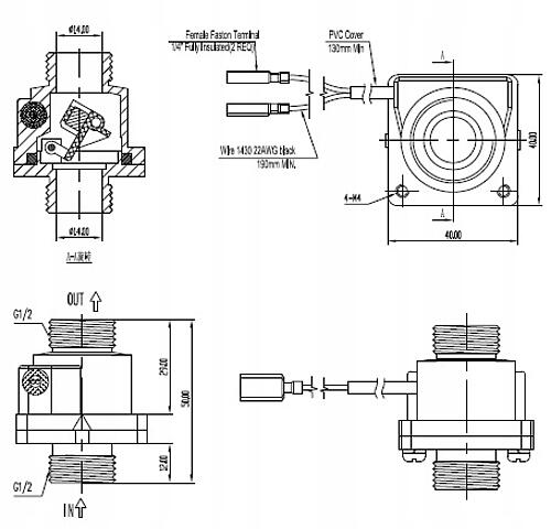 Czujnik przepływu cieczy 1/2, NO: FSW-4050-G1/2"_SUS