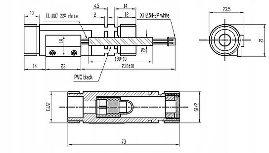 Czujnik wyposażony w styk no, który pod wpływem siły wyporu cieczy powoduje zwieranie lub rozwieranie kontaktronu.