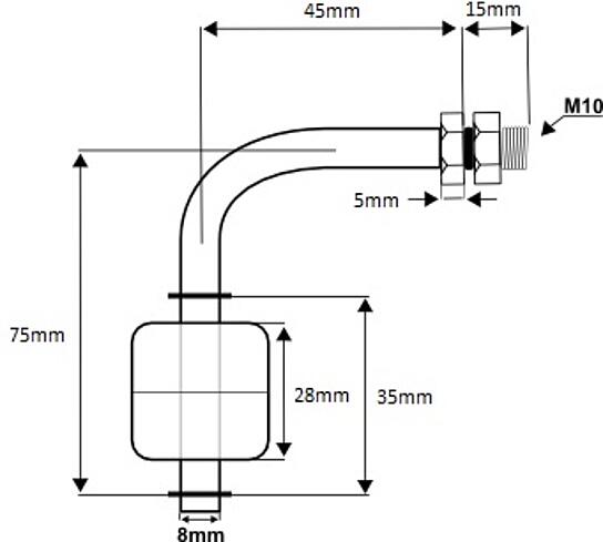Czujnik pływakowy kątowy, NO: SLA-1078-SS-2A1A