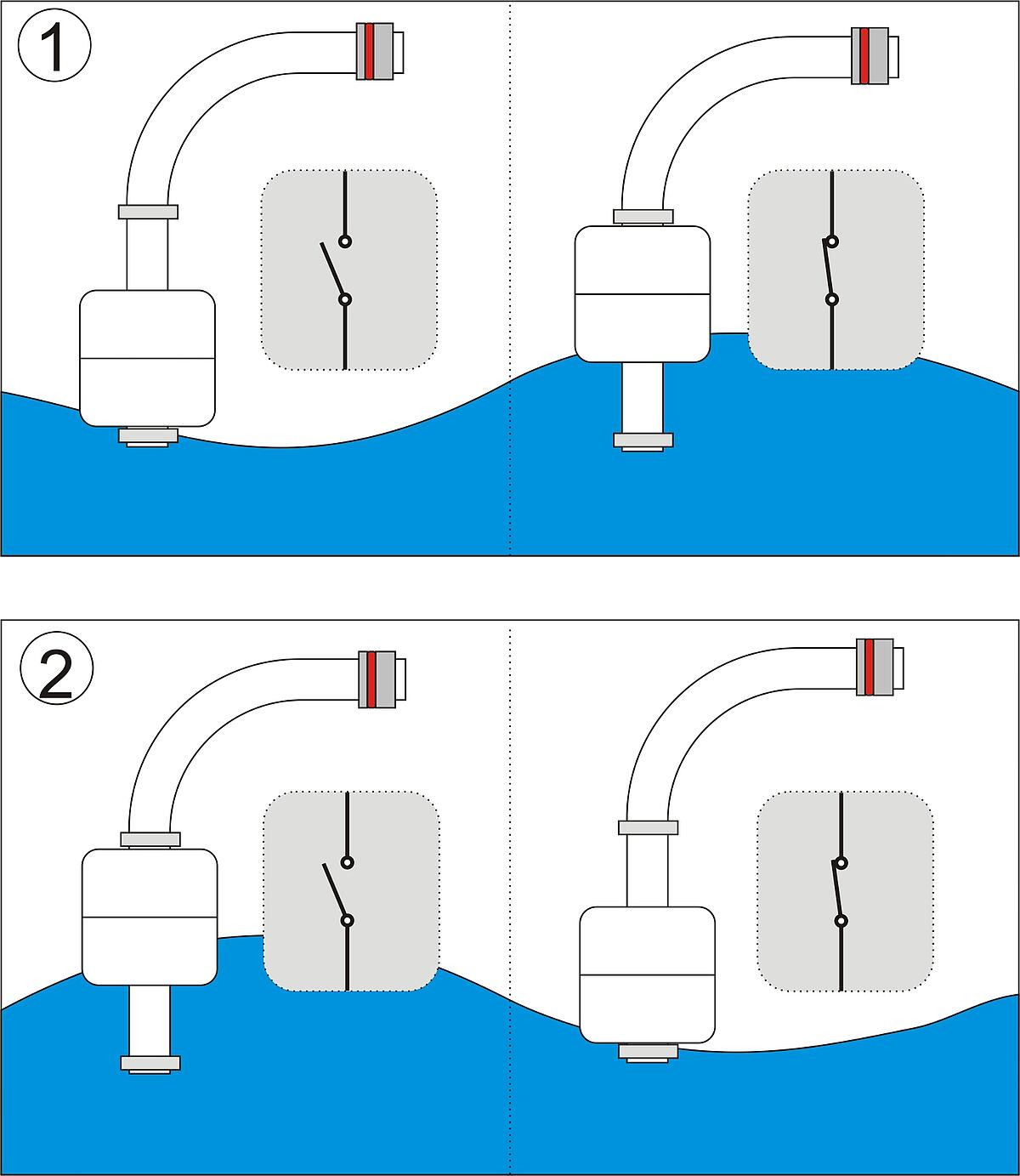 Montowane są zazwyczaj na ścianie zbiornika, tak więc mogą służyć do kontroli dolnego lub górnego poziomu cieczy. Poprzez zmianę położenia pływaka uzyskuje się zmianę funkcji kontaktronu ze zwiernego na rozwierny.