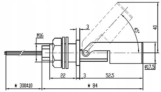 Czujnik poziomu cieczy (włącznik/wyłącznik) pływakowy. Przeznaczony do montażu bocznego z zewnętrznej strony zbiornika, za pomocą kołnierza uszczelniającego. Sonda może kontrolować górny jak i dolny poziom cieczy w zbiorniku. Czujnik posiada pływak z wbudowanym magnesem. Ciecz siłą wyporu przesuwa pływak, po rurce, co powoduje zwieranie lub rozwieranie wbudowanego kontaktronu. Czujnik można stosować do różnego rodzaju cieczy np. woda, ścieki, olej.
