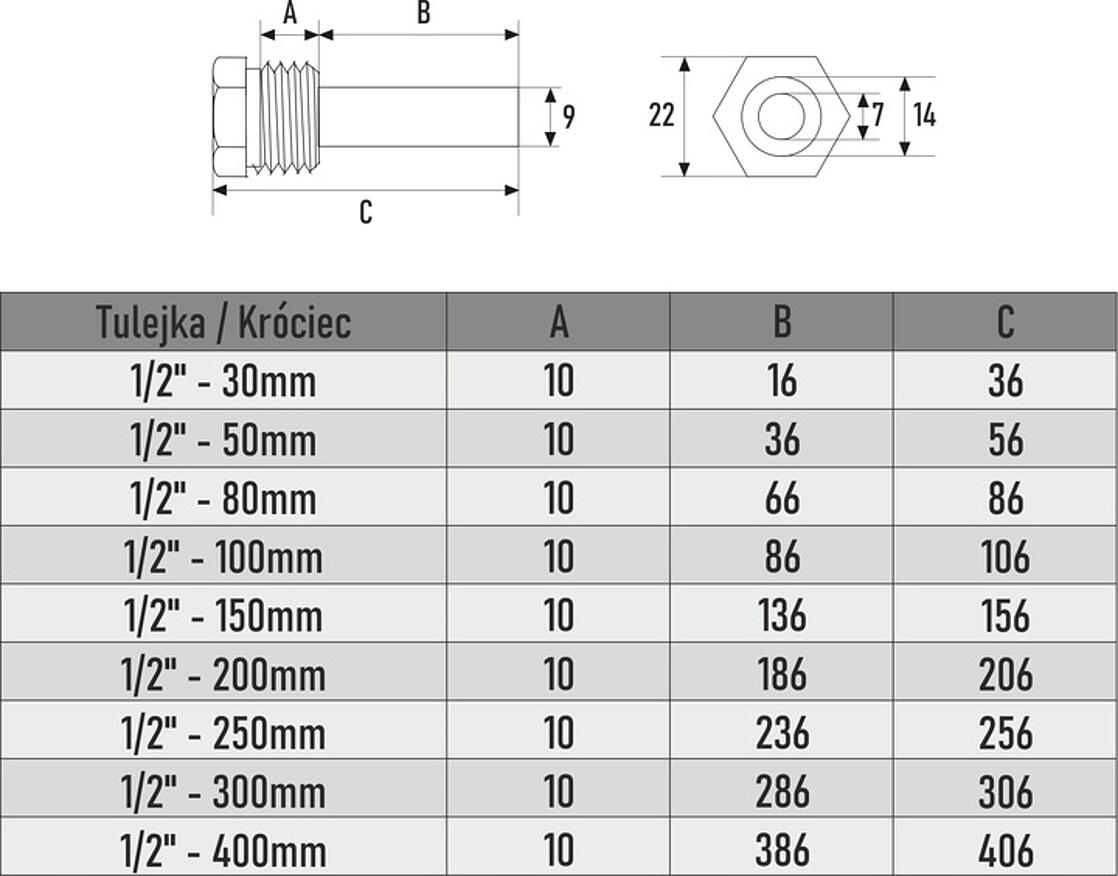 długość: 30mm,50mm,80mm,100mm,150mm,200mm,250mm,300mm,400mm