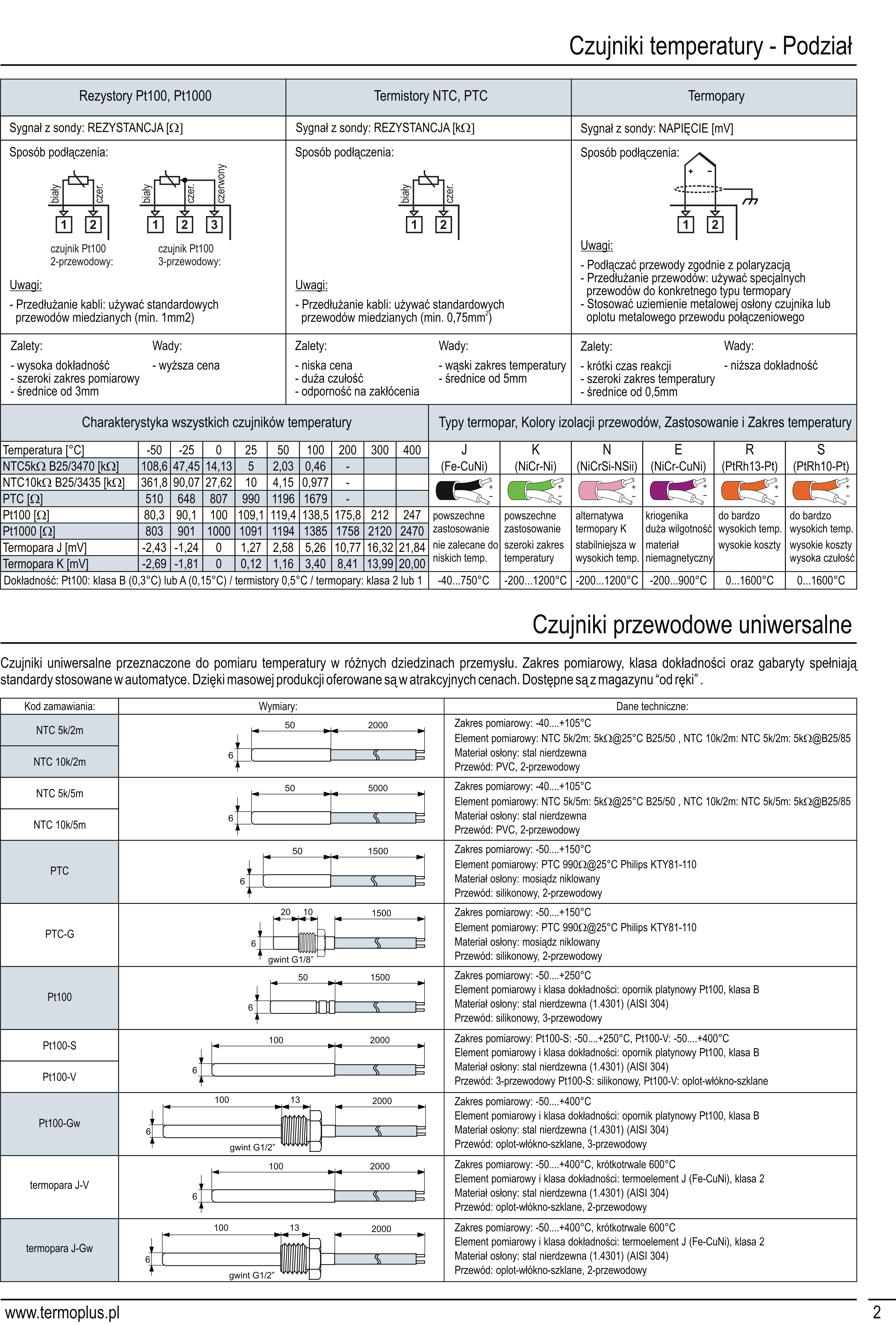 Czujniki uniwersalne przeznaczone do pomiaru temperatury w różnych dziedzinach przemysłu. Zakres pomiarowy, klasa dokładności oraz gabaryty spełniają standardy stosowane w automatyce. Dzięki masowej produkcji oferowane są w atrakcyjnych cenach. Dostępne są z magazynu “od ręki” .