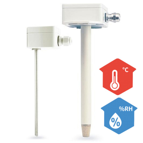 Przemysłowe przetworniki wilgotności i temperatury przeznaczone do systemów klimatyzacji, zarządzania budynkami i technice wentylacyjnej. Stosowane również w przemyśle spożywczym, przetwórczym i ogrodniczym. Przeznaczone do montażu w kanale. Do pomiaru temperatury zastosowano element Pt100, a do pomiaru wilgotności polimerowy element pojemnościowy. Czujniki charakteryzują się wysoką stabilnością pomiaru i odpornością na zakłócenia. Zastosowano kompensację temperaturową przy pomiarze wilgotności. Sygnał pomiarowy jest przetwarzany na liniowy sygnał prądowy 4...20mA lub napięciowy 0...10V. Dostępne są także wersje z wyjściem pasywnym Pt100, Pt1000 lub NTC.