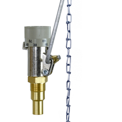 Materiały: Korpus wykonany z mosiądzu galwanizowanego, pokrętło regulacyjne z wysokojakościowego tworzywa, tuleja zanurzeniowa z mosiądzu, dźwignia i łańcuszek ze stali.