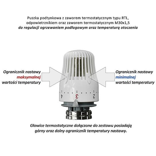 Ogranicznik temperatury na powrocie RTL jest samoczynnie działającym regulatorem do regulacji temperatury wody na powrocie z grzejnika lub pętli ogrzewania podłogowego. Temperatura wody przenoszona jest z korpusu zaworu na czujnik głowicy. Jeśli nastawiona na głowicy wartość temperatury jest niższa od temperatury wody, regulator się zamyka, a jeśli wyższa regulator się otwiera.