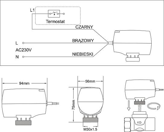 Zawór w trybie jedno przewodowym jest NC (otwiera po podaniu napięcia na przewód sterujący)