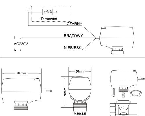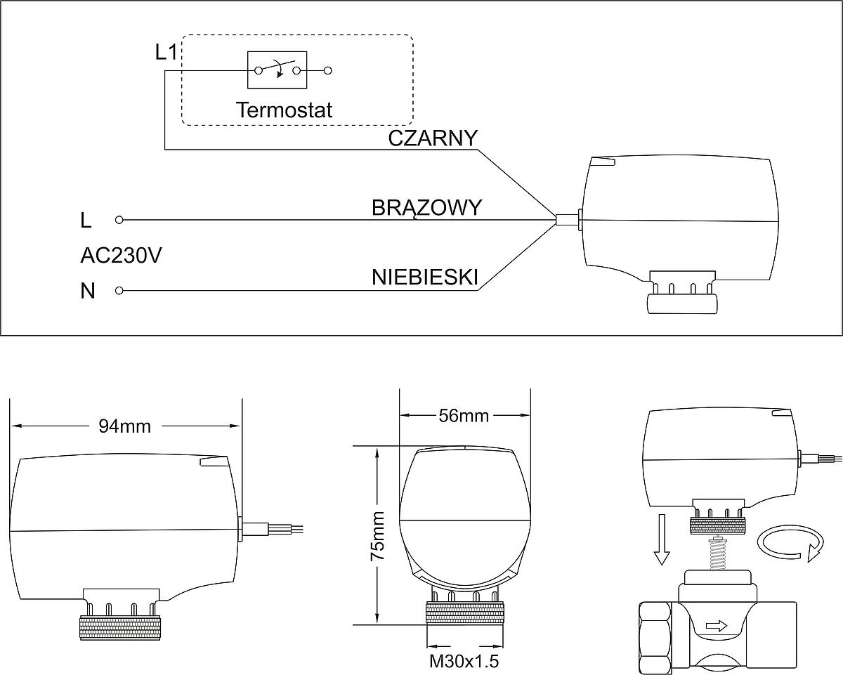 Zawór w trybie jedno przewodowym jest NC (otwiera po podaniu napięcia na przewód sterujący)