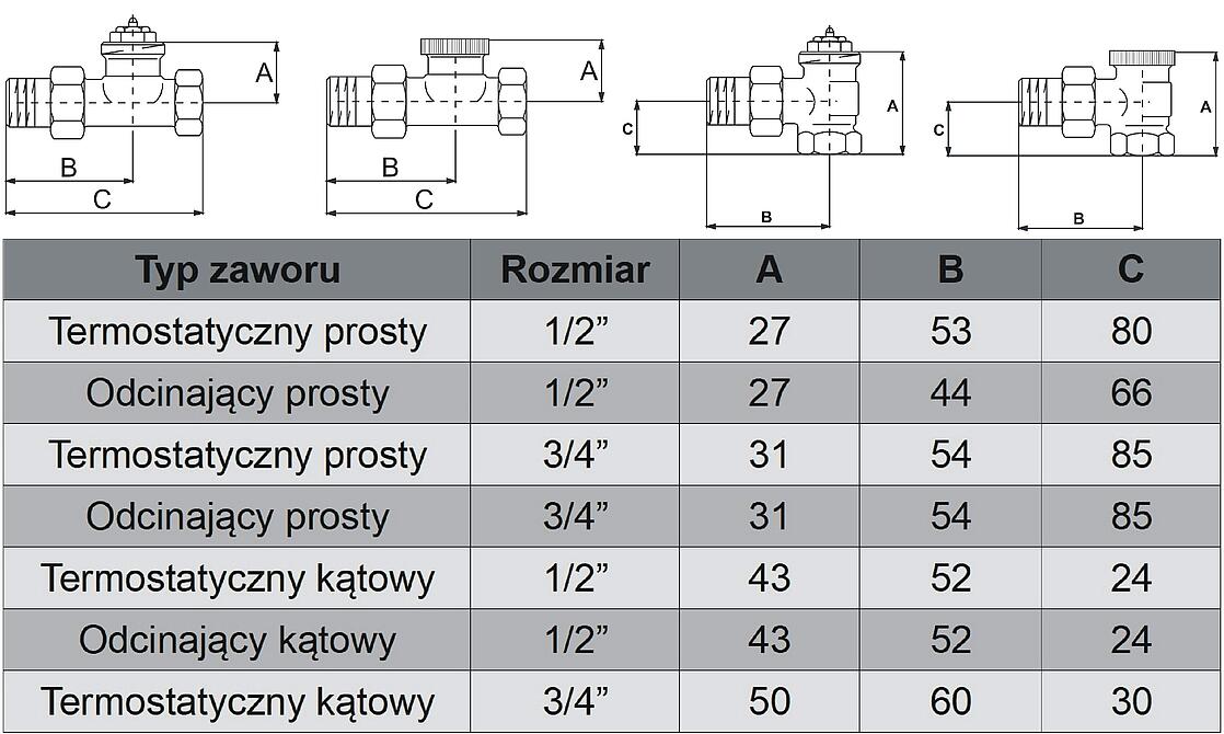 Do zaworu pasują głowice z przyłączem M30x1,5