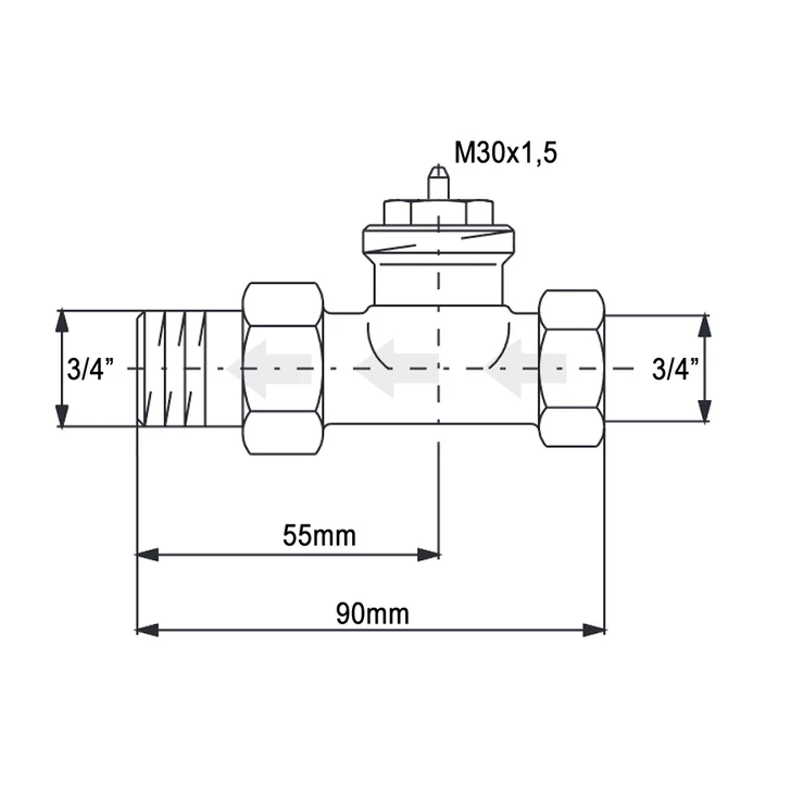 Zawór termostatyczny 3/4" M30x1,5 No: VTE-34S