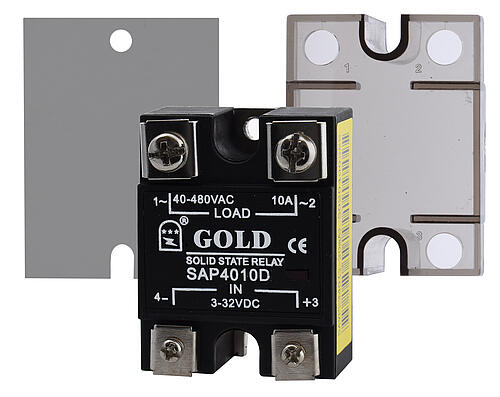 Przekaźnik jest mocowany do płyty montażowej lub radiatora. Należy zastosować dołączoną podkładkę, aby umożliwić lepsze odprowadzanie ciepła. W opcji dostępny jest radiator z mocowaniem na szynę DIN. Dołączona do zestawu plastikowa, przezroczysta osłona zapewnia ochronę zacisków IP20. Dioda LED pozwala na kontrolę działania.