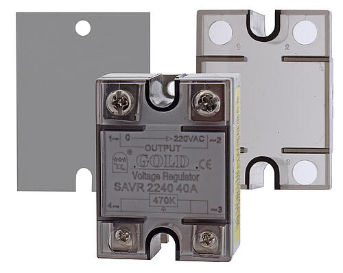 Przekaźnik jest mocowany do płyty montażowej lub radiatora. Dołączona do zestawu plastikowa, przezroczysta osłona zapewnia ochronę zacisków IP20.