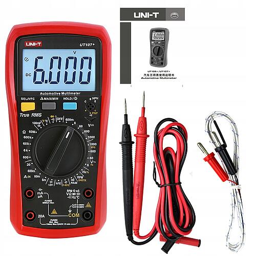 - prąd zmienny AC/DC: 6mA/60mA/600mA/10A (20A na 10s max)