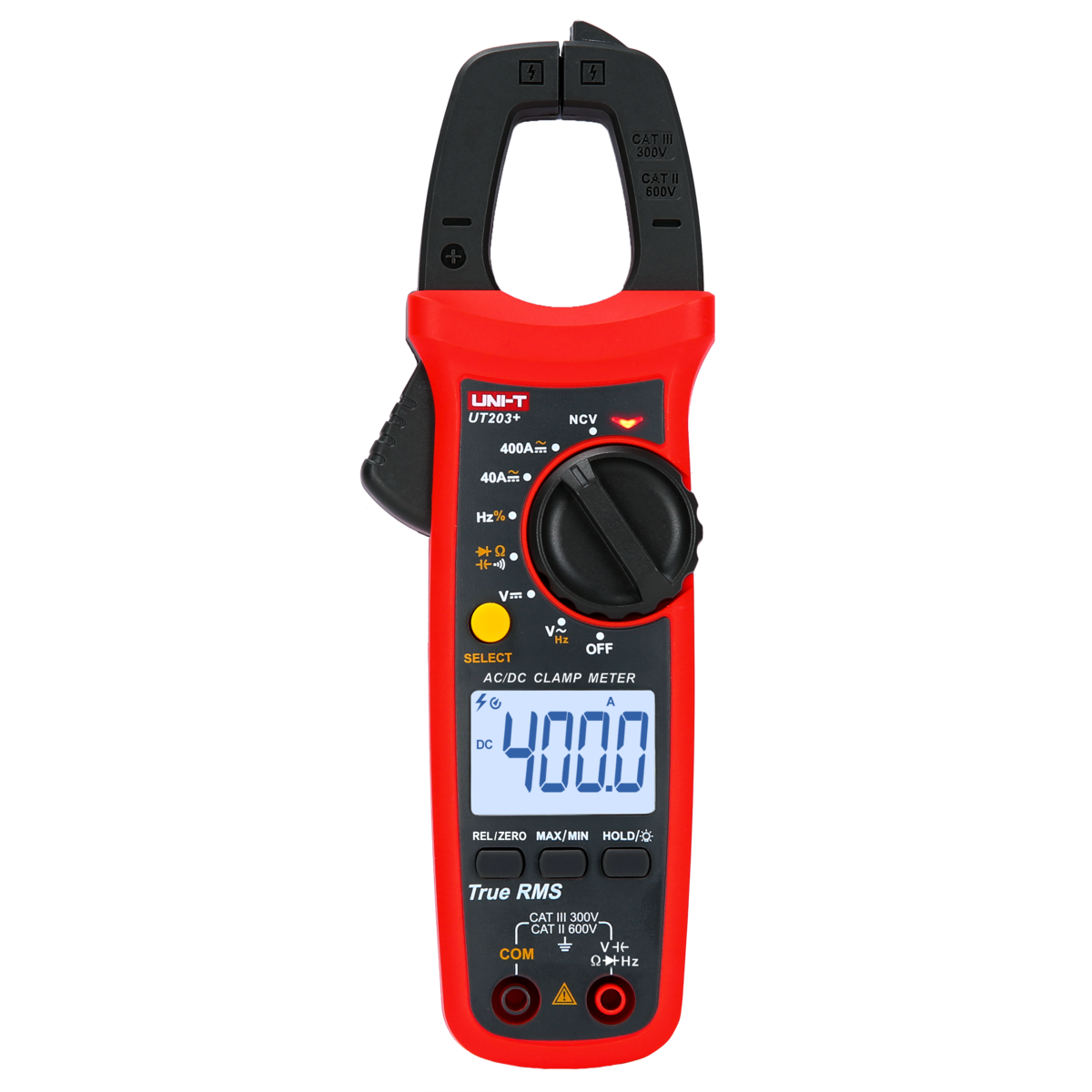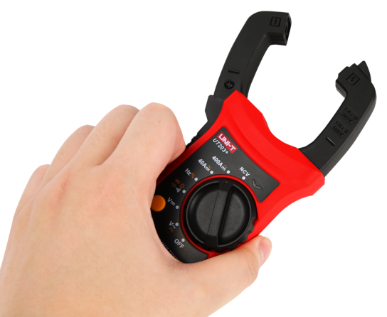 Poręczny miernik cęgowy z funkcją bezdotykowego wykrywania napięcia, posiadający duży podświetlany wyświetlacz pozwalający na pracę niemal w każdych warunkach oświetleniowych.